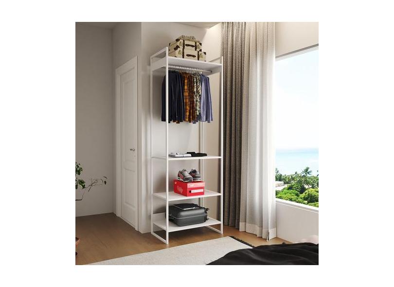 Guarda Roupa Aberto Industrial Modulado Solteiro Branco Cabideiro Ferr