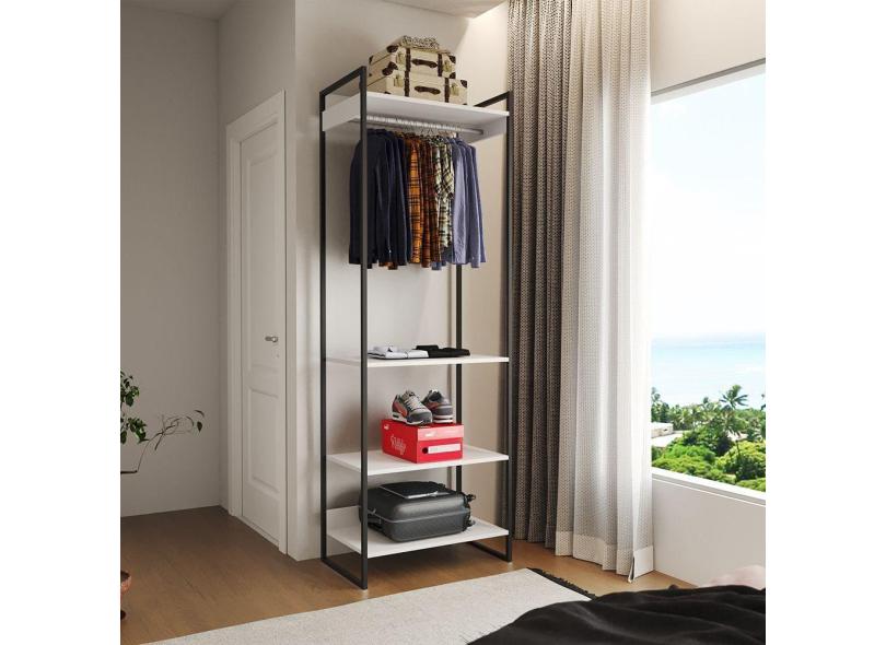 Guarda Roupa Aberto Industrial Modulado Solteiro Branco Cabideiro Ferro Preto