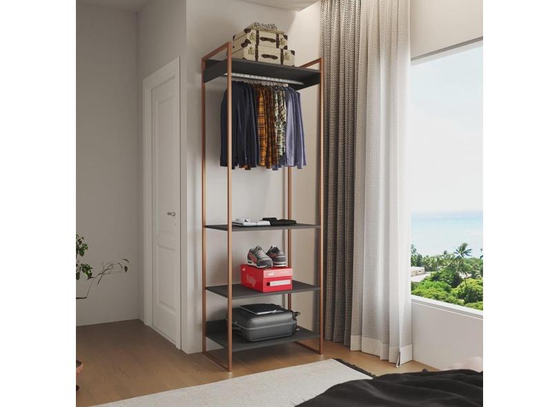 Guarda Roupa Aberto Industrial Modulado Solteiro Preto Cabideiro Base Cobre