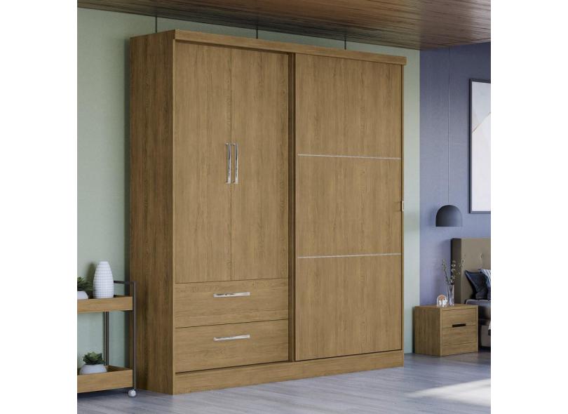 Guarda Roupa Armário Roupeiro Casal Grande 3 Portas Espelho 2 Gavetas Quarto Marrom Freijó