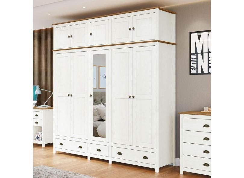Guarda-Roupa Casal 10 Portas 3 Gavetas Topázio Branco/Freijó Madeira Pinus - Finestra