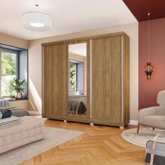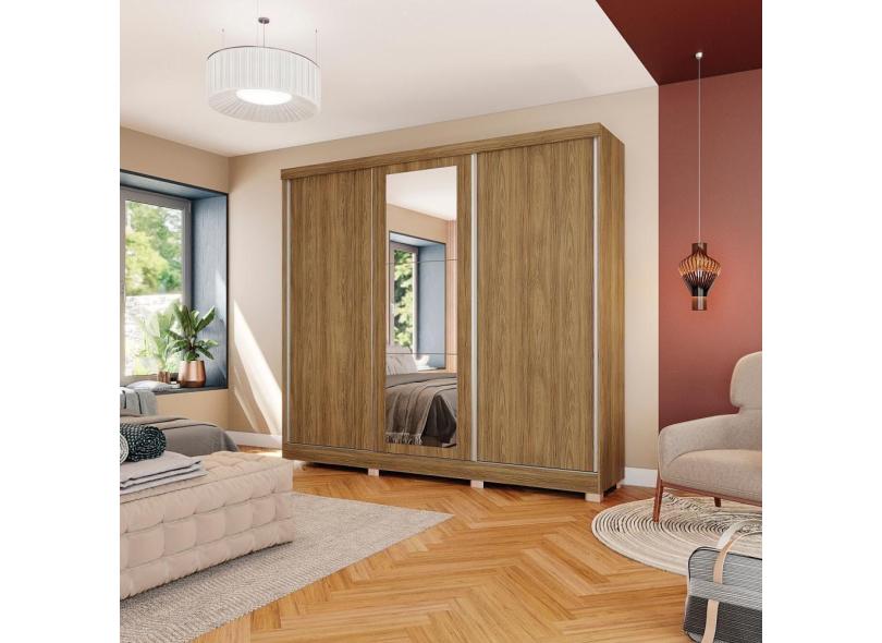 Guarda-Roupa Casal 100% MDF Kappesberg c/Pés e 3 Espelhos 3 Portas de Correr 8 Gavetas Nogueira