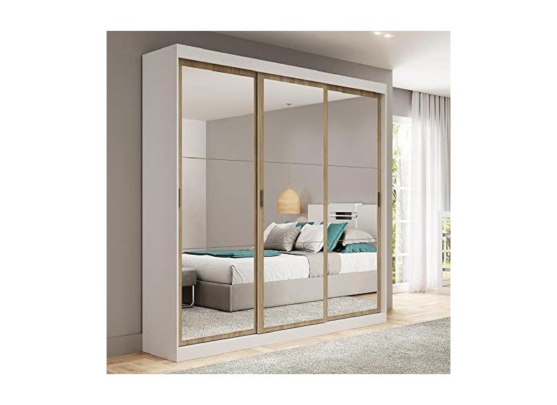Guarda Roupa Casal 3 Portas 4 Gav Espelho Branco Carraro