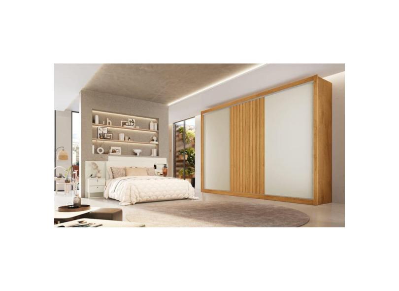 Guarda Roupa Casal 3 Portas 6 Gavetas - Vitoria-Peroba/Off White - Móveis Europa