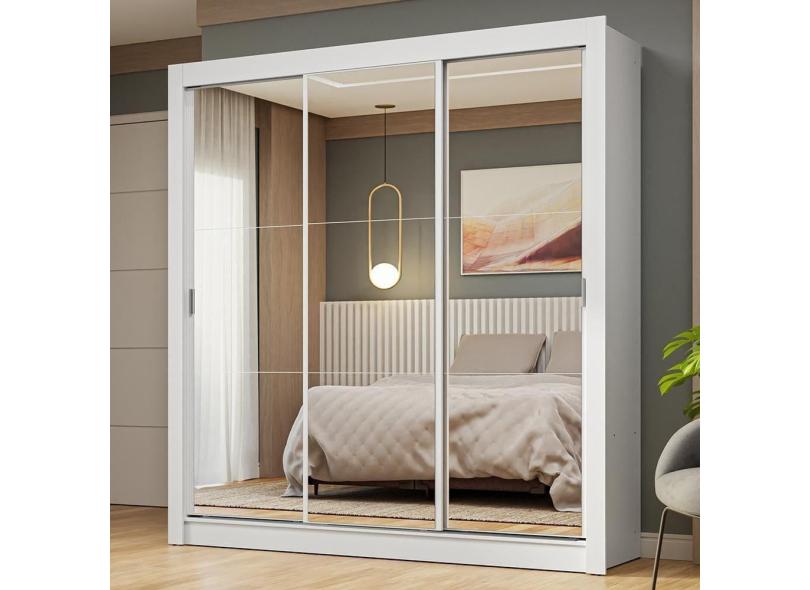 Guarda-roupa Casal 3 Portas Correr Espelho Branco Nobre