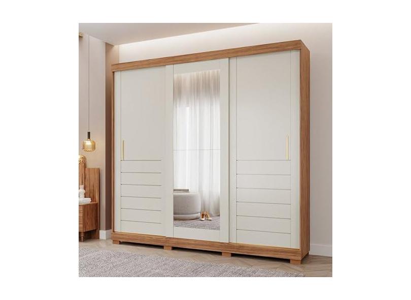 Guarda-roupa Casal 3 Portas de Correr 6 Gavetas com Pés 100% Mdf Boston Espresso Móveis Cinamomo/Off White