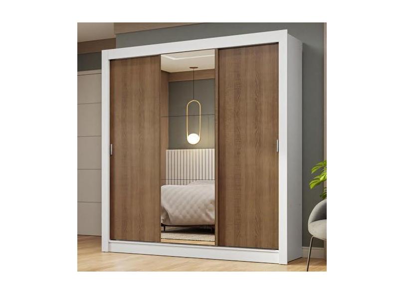 Guarda-roupa Casal 3 Portas de Correr com Espelho Branco/rustic Nobre Madesa
