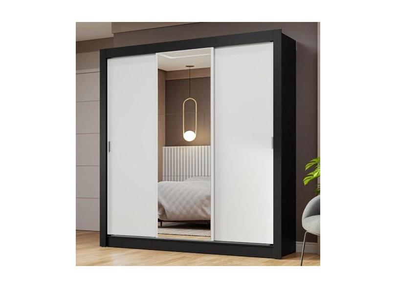 Guarda-roupa Casal 3 Portas de Correr com Espelho Preto/branco Nobre Madesa