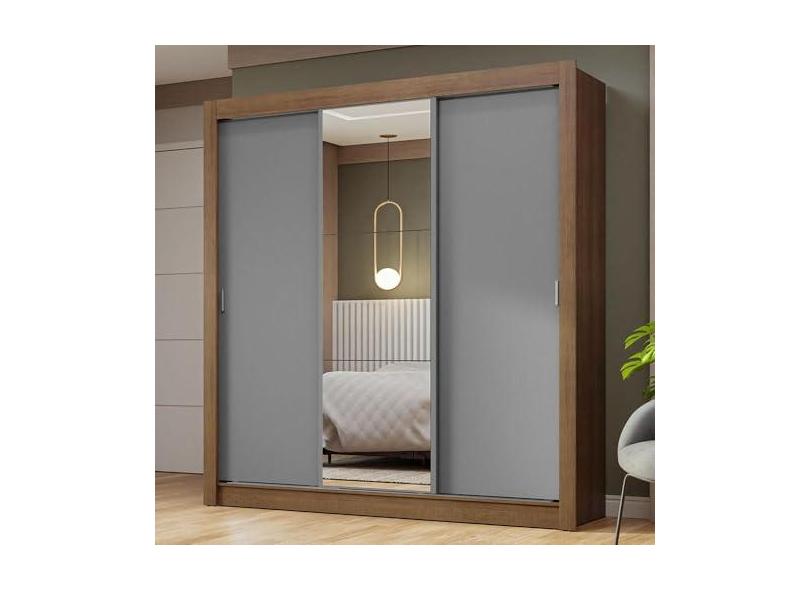Guarda-roupa Casal 3 Portas de Correr com Espelho Rustic/cinza Nobre Madesa