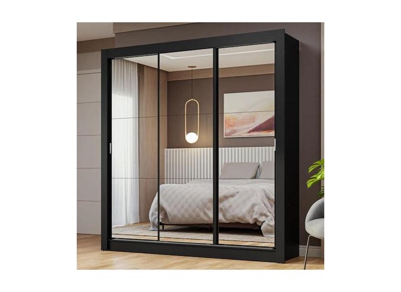 Guarda-roupa Casal 3 Portas de Correr de Espelho Preto Nobre Madesa