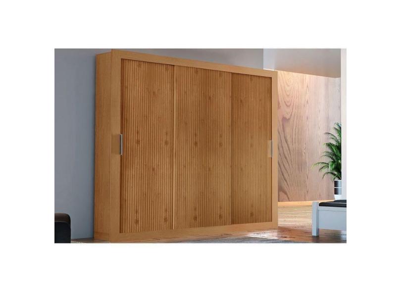 Guarda Roupa Casal 3 Portas De Correr E 4 Gavetas Veneza Naturale-naturale Ripado 3d