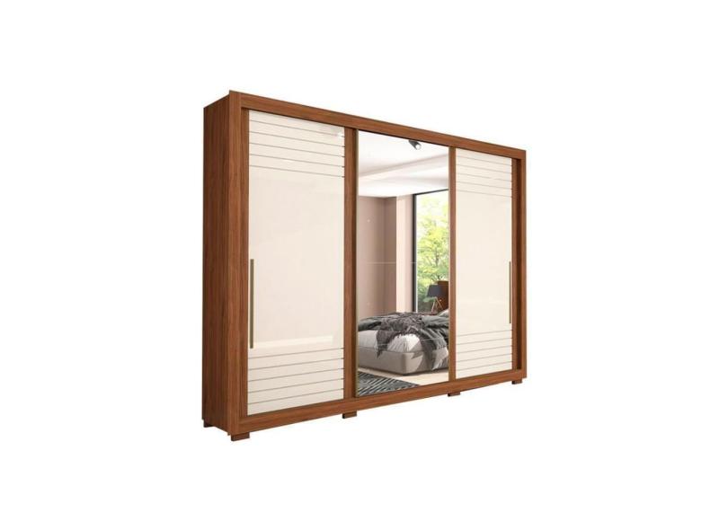 Guarda Roupa Casal 3 Portas De Correr E 6 Gavetas C/ Espelho E Pés Vitória Avelã/Off White - Panan