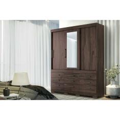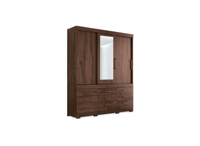 Guarda Roupa Casal 3 Portas De Correr E 9 Gavetas C/ Espelho E Pés Click 3.9 Ébano - Santos Andirá