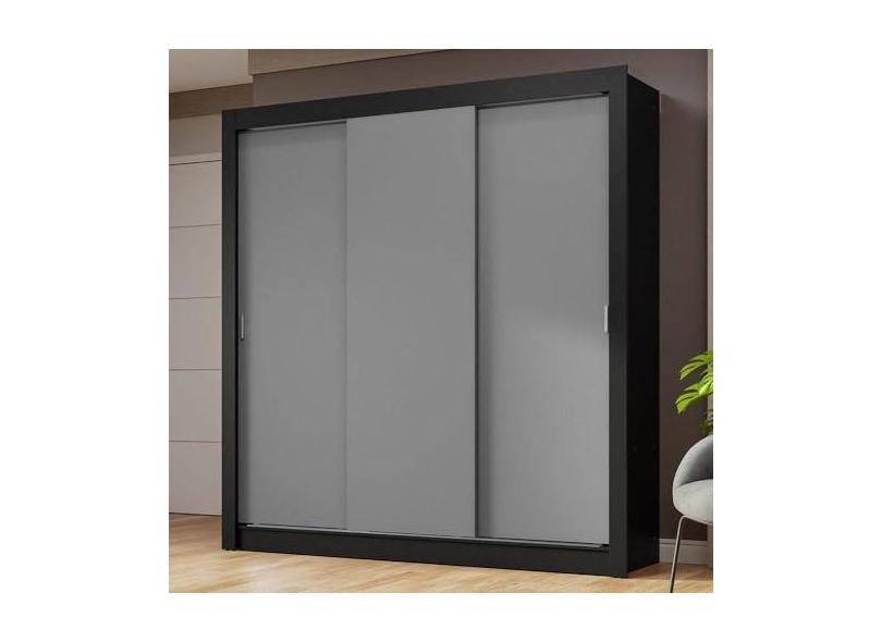 Guarda-roupa Casal 3 Portas de Correr Preto/cinza Nobre Madesa
