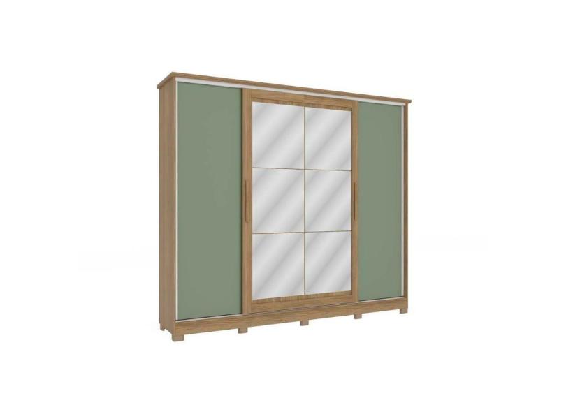 Guarda Roupa Casal 4 Portas De Correr c- Espelho E Pés Cb01n565 Nogueira-macadamia-verde Oliva