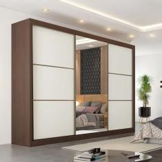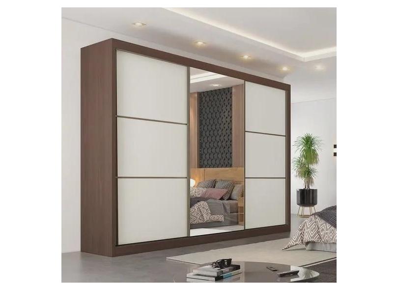 Guarda Roupa Casal 6 Gavetas com Espelho - Bragança-Ipê/Off White - Móveis Europa