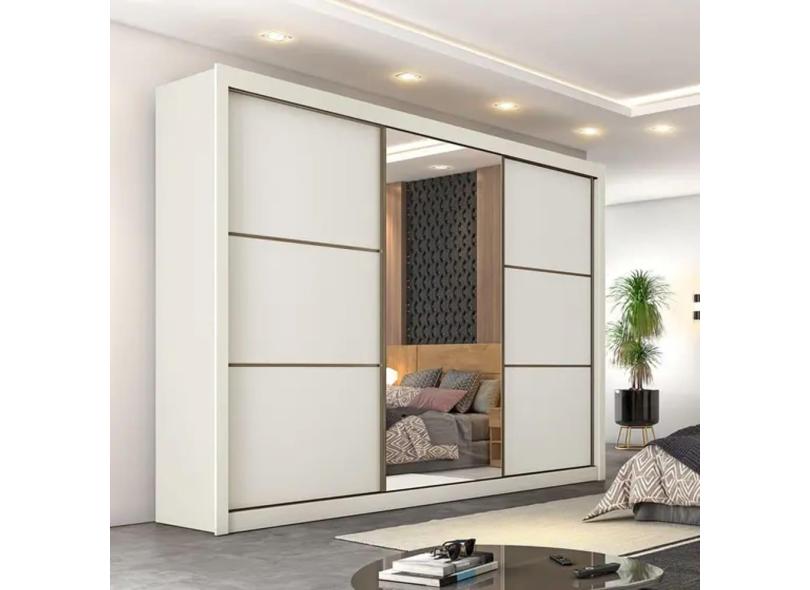 Guarda Roupa Casal 6 Gavetas com Espelho - Bragança-Off White - Móveis Europa