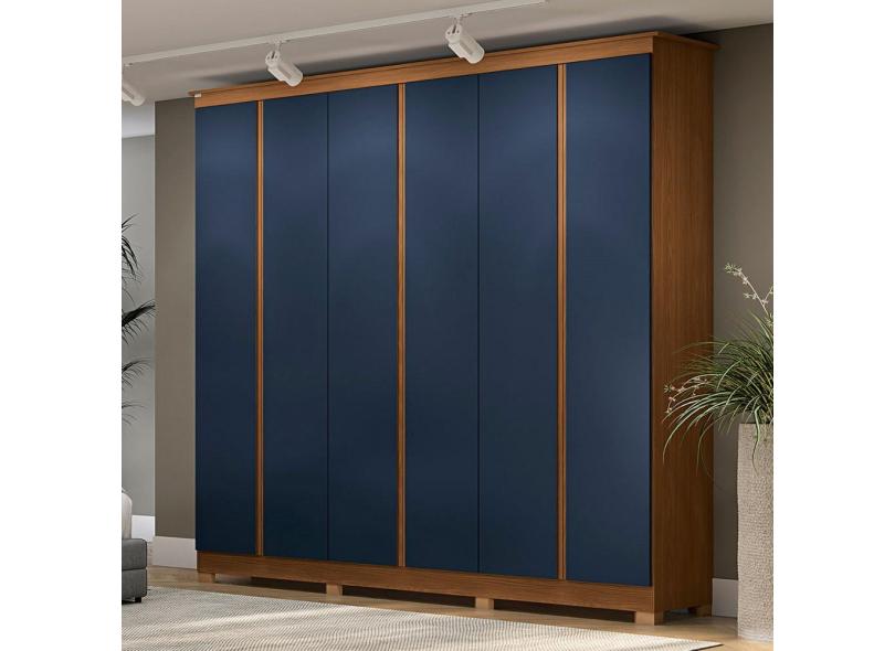 Guarda-Roupa Casal 6 Portas 3 Gavetas Cb02r583 Canela/Azul Profundo - Kappesberg