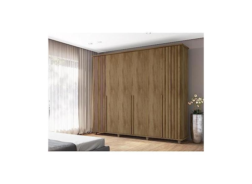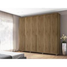 Guarda Roupa Casal 6 Portas Detalhe em Ripado 3 Gavetas Internas França Cinamomo