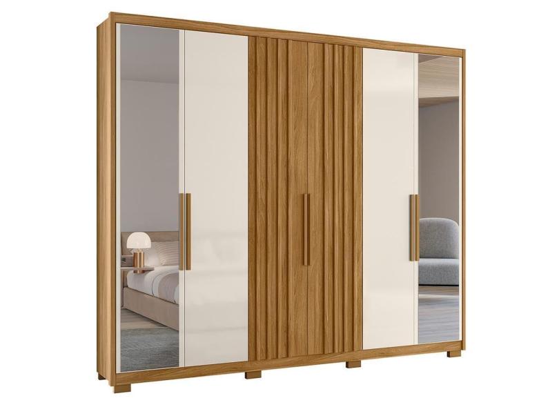 Guarda Roupa Casal Araguaia Ripado 6 Portas com Espelho - Moval