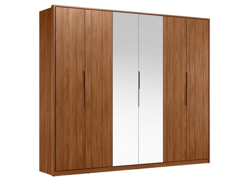 Guarda Roupa Casal Atrice 6 Portas Nogueira Touch com Espelho Demóbile - Demartêz