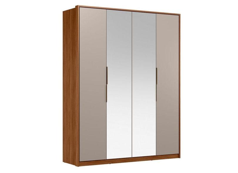 Guarda Roupa Casal Attore 4 Portas Nogueira Nude Prime Tx Com Espelho Demóbile - Demartêz