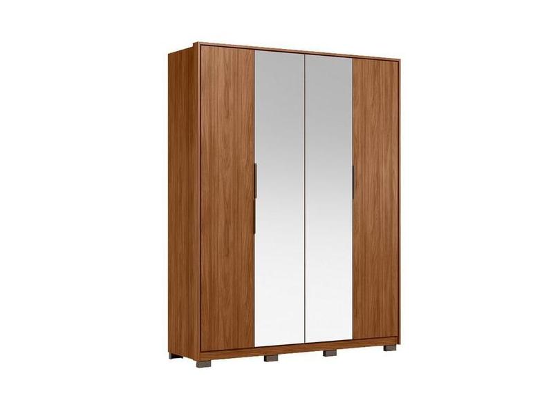 Guarda Roupa Casal Attore 4 Portas Nogueira Touch Com Espelho E Pés De