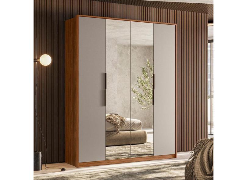 Guarda Roupa Casal Attore Ambiente 4 Portas Nogueira Nude Prime tx com Espelho Demóbile - Demartêz