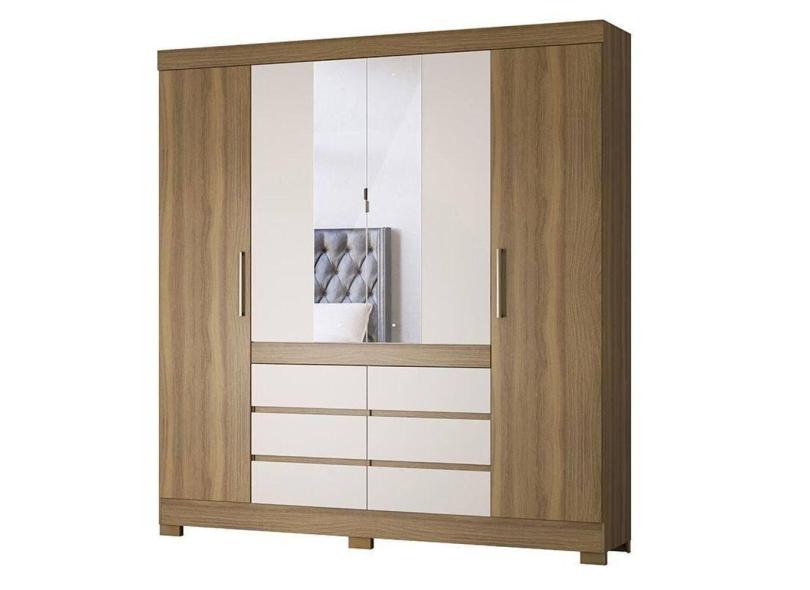 Guarda Roupa Casal Cádis 4 Portas Amêndola Off White Com Espelho - Demóbile Amêndola Off White