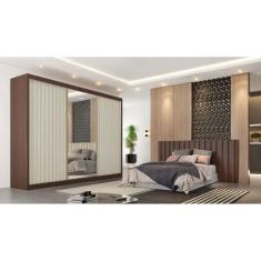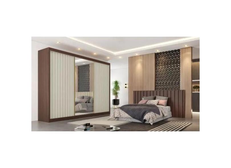 Guarda Roupa Casal com 3 Portas de Correr e Espelho Central - Ravena-Ipê - Móveis Europa