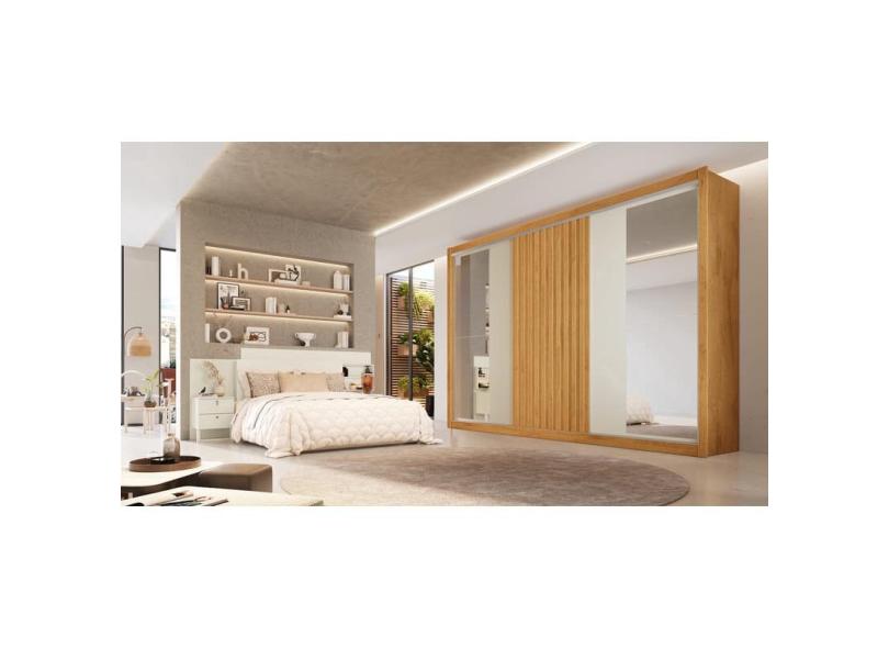 Guarda Roupa Casal Com Espelho 3 Portas 6 Gavetas - Vitoria-Peroba/Off White - Móveis Europa