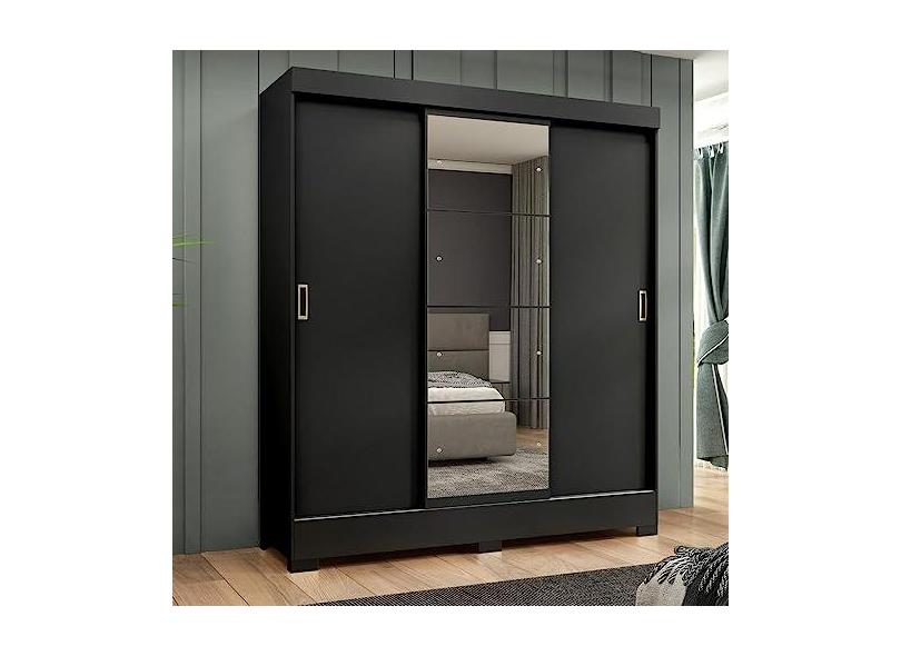 Guarda Roupa Casal com Espelho 3 Portas Atenas Yescasa Preto