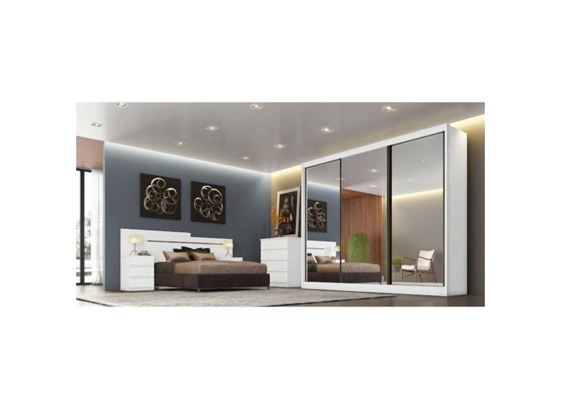 Guarda Roupa Casal com Espelho 3 Portas de Correr 6 Gavetas - Diamond-Branco - Móveis Novo Horizonte