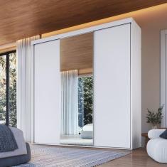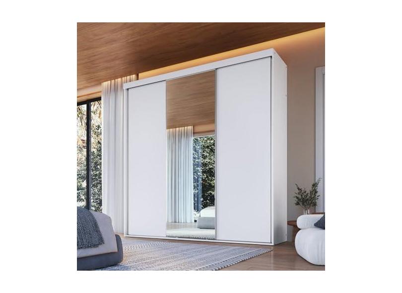 Guarda Roupa Casal com Espelho 3 Portas de Correr Rc3104 Branco