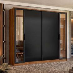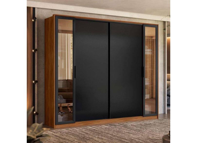 guarda-roupa casal com vidro reflecta laredo 4 pt 4 gv nogueira e preto