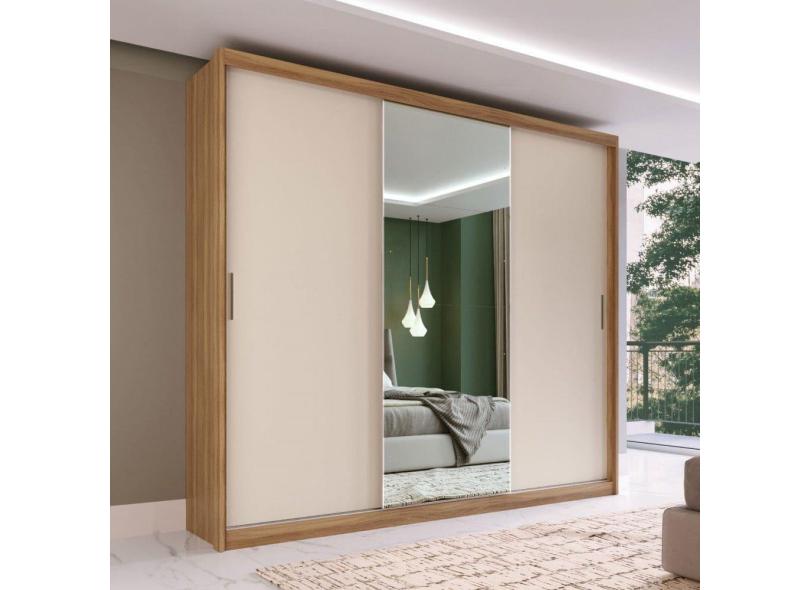 Guarda-Roupa Casal Dalila 3 Portas 4 Gavetas 5 Prateleiras com 1 Porta Espelho Amêndola/Off-White - Demóbile