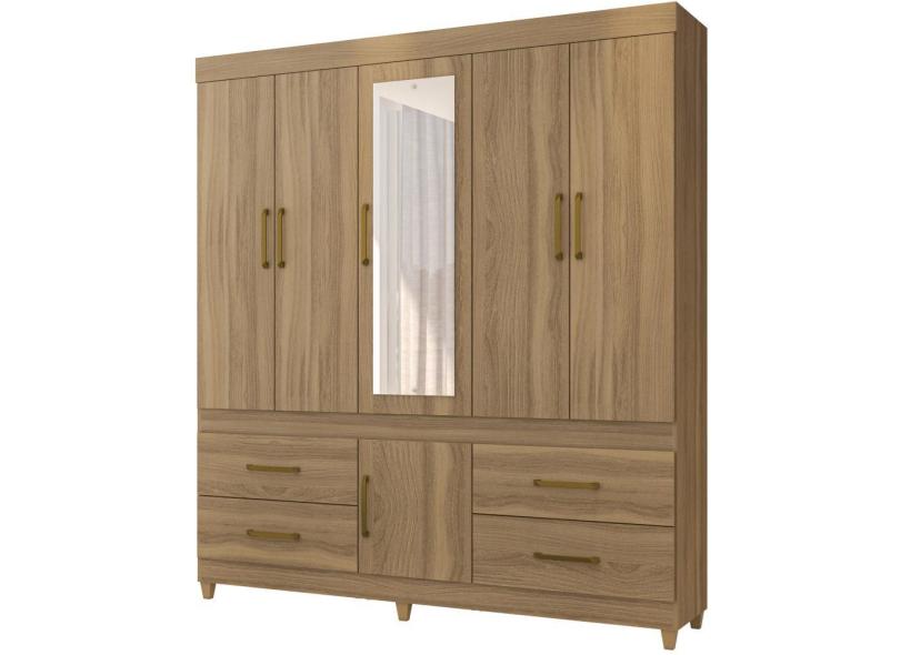 Guarda-Roupa Casal Demóbile Guarujá 6 portas 4 gavetas com espelho e pés Amendola Touch 134