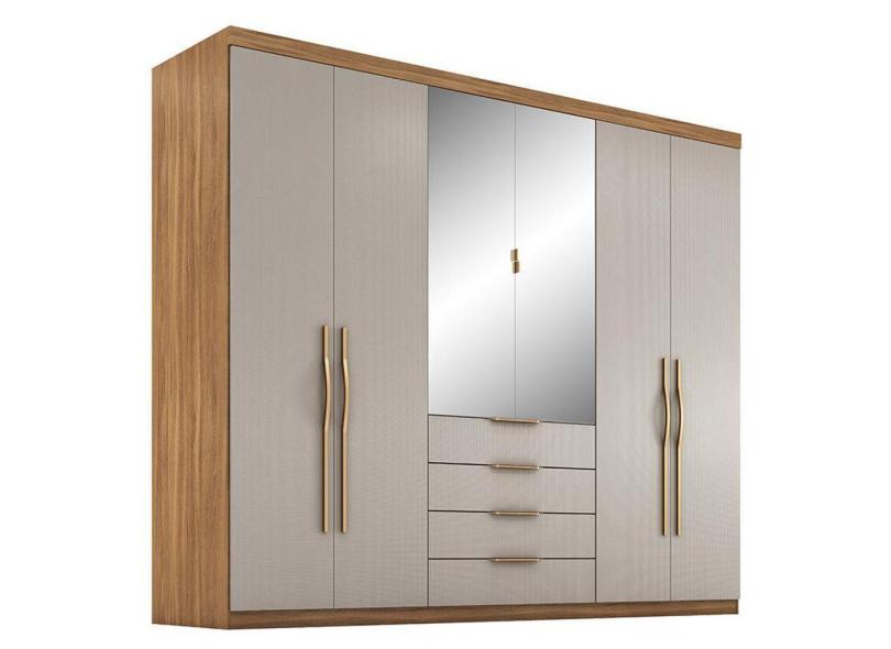 Guarda Roupa Casal Giardino 6 Portas 4 Gavetas Amêndola Nude Com Espelho - Demóbile Amêndola Nude
