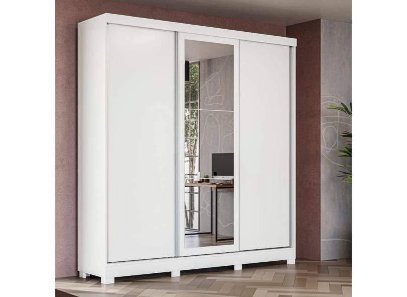 Guarda-Roupa Casal Kappesberg 3 Portas Reversíveis de Correr 3 Espelhos 2 Gavetas Branco