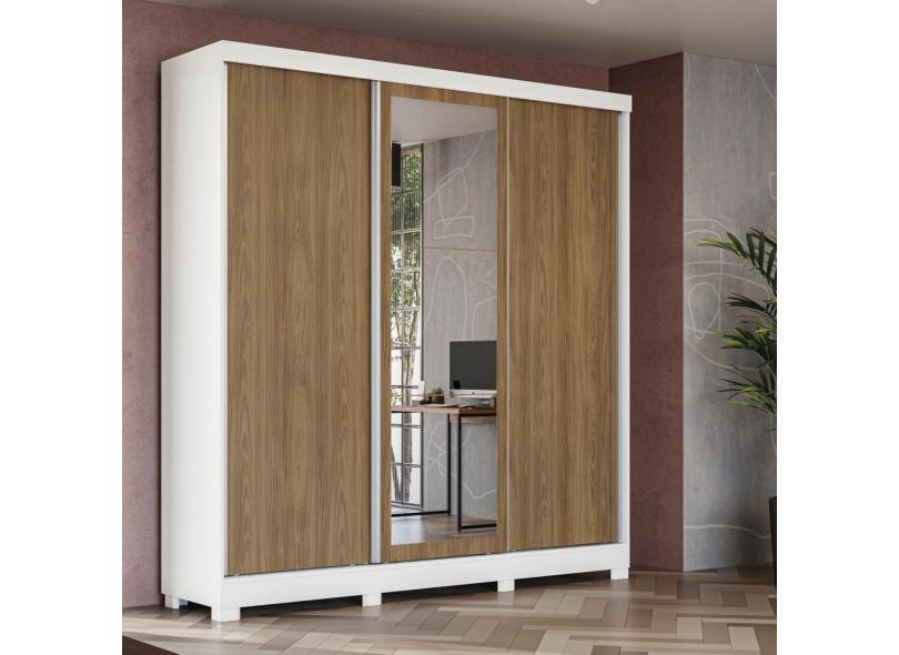 Guarda-Roupa Casal Kappesberg 3 Portas Reversiveis de Correr 3 Espelhos 2 Prateleiras Branco/Nogueira
