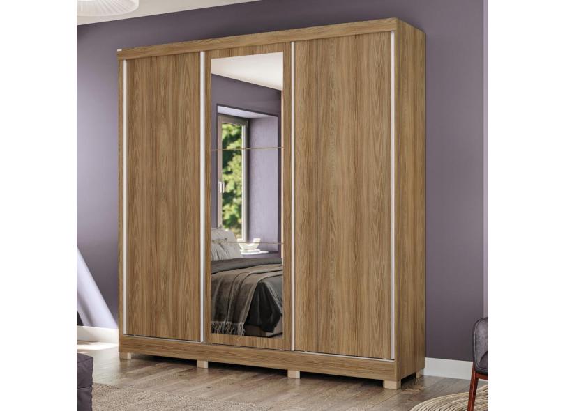 Guarda-Roupa Casal Kappesberg 3 Portas Reversiveis de Correr 3 Espelhos 3 Gavetas Nogueira