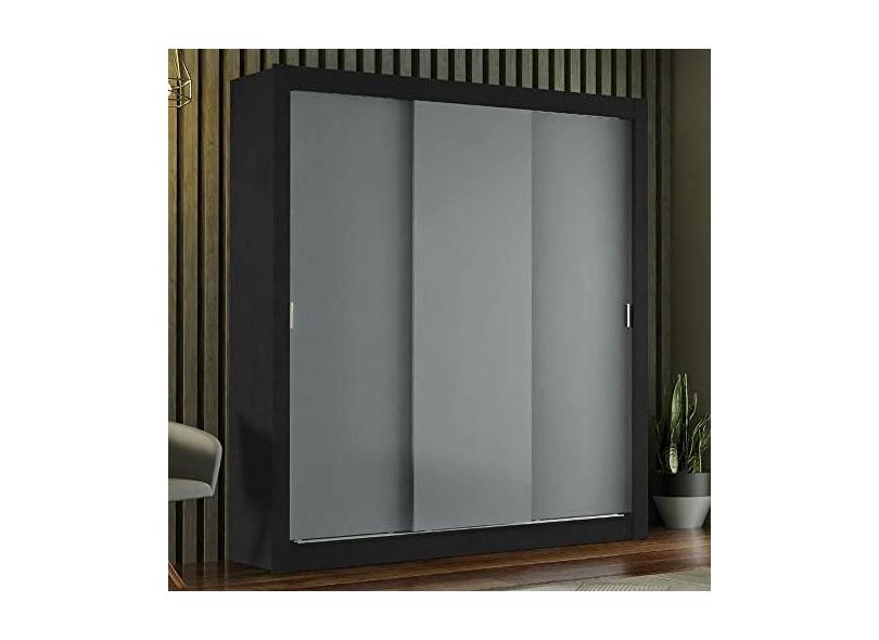 Guarda-roupa Casal Madesa Mônaco 3 Portas de Correr - Preto/cinza