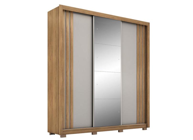 Guarda Roupa Casal Moema 3 Portas Flex com Espelho e Pés - Demóbile Amêndola/Nude Prime