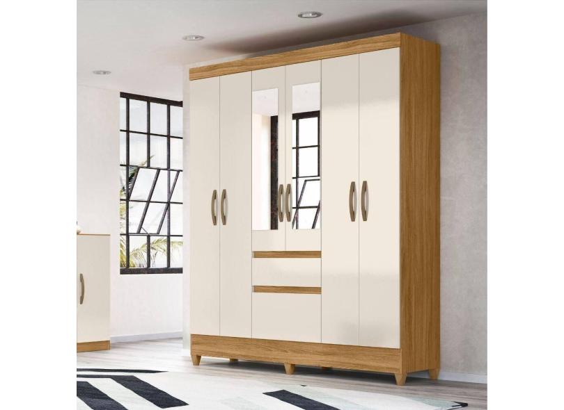 Guarda Roupa Casal New Cuba 6 Portas Freijó Off White Moval