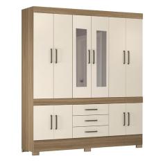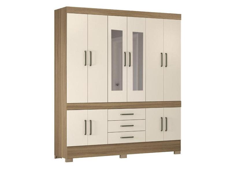 Guarda Roupa Casal New Murano 10 Portas E 3 Gavetas Amêndola Off White Com Espelho - Demóbile Amêndola Off White