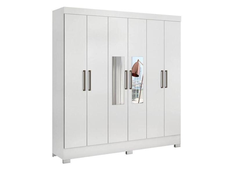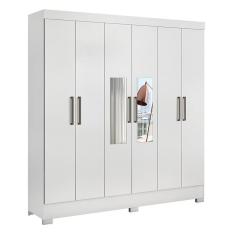Guarda Roupa Casal Prático 6 Portas Branco Com Espelho - Demóbile Branco