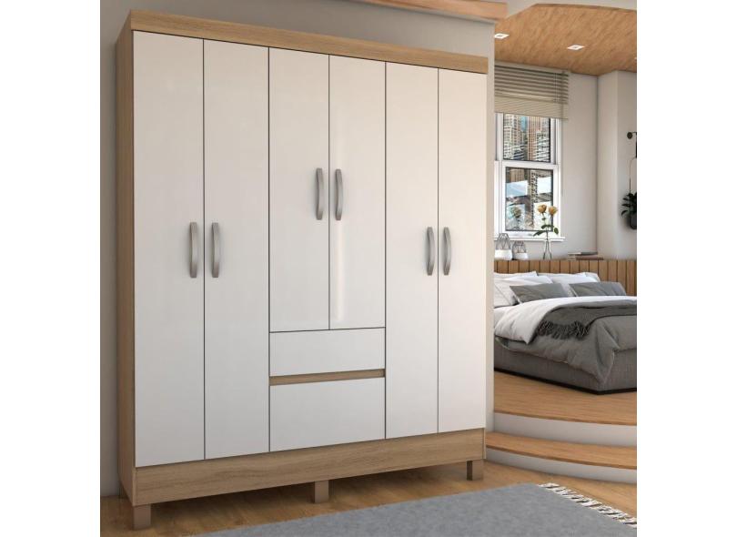 Guarda-Roupa Casal Senna 6 Portas 2 Gavetas Amêndola Touch/Off White - Panorama Móveis
