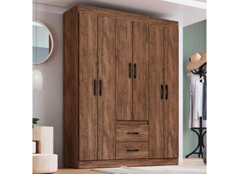 Guarda-Roupa Casal Sidney 6 Portas 2 Gavetas Castanho - Doripel