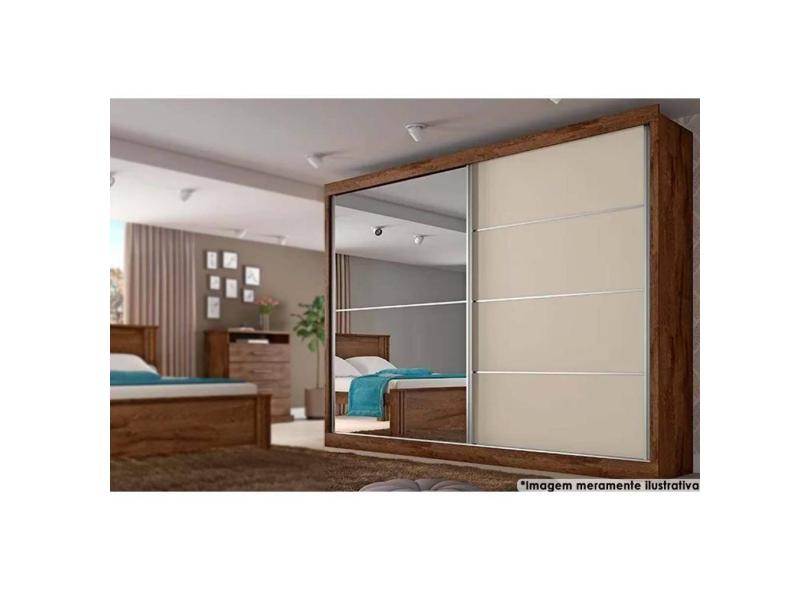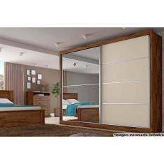 Guarda Roupa Casal Verona Plus c/4 Gavetas e 2 Portas de Correr c/1 Espelho Braúna/Off White - Europa