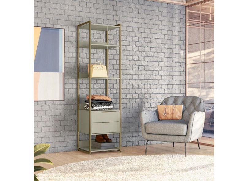 Guarda-Roupa Closet Industrial Mital 2 GV Off White e Dourado 54 cm
